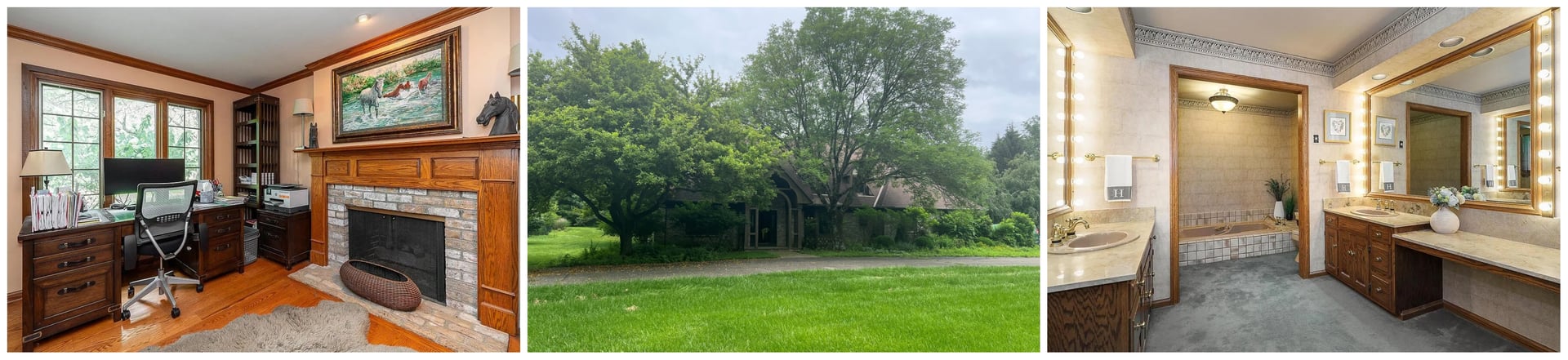 This reimagined 6-bed, 5.5-bath home offers 7,300+ sq ft of luxury on a private wooded lot. Originally built in 1985, it now features all-new finishes, custom hardwood flooring, updated fireplaces, and a gourmet kitchen with a separate chef’s pantry. Two primary suites, one on each level, were modernized with spa-like baths and custom closets. Expansive living areas, a great room with wooded views, home office, and a finished lower level with a wine cellar and media room complete the interior. Outdoors, a patio and koi pond provide serene relaxation. A rare blend of seclusion, modern updates, and timeless elegance.